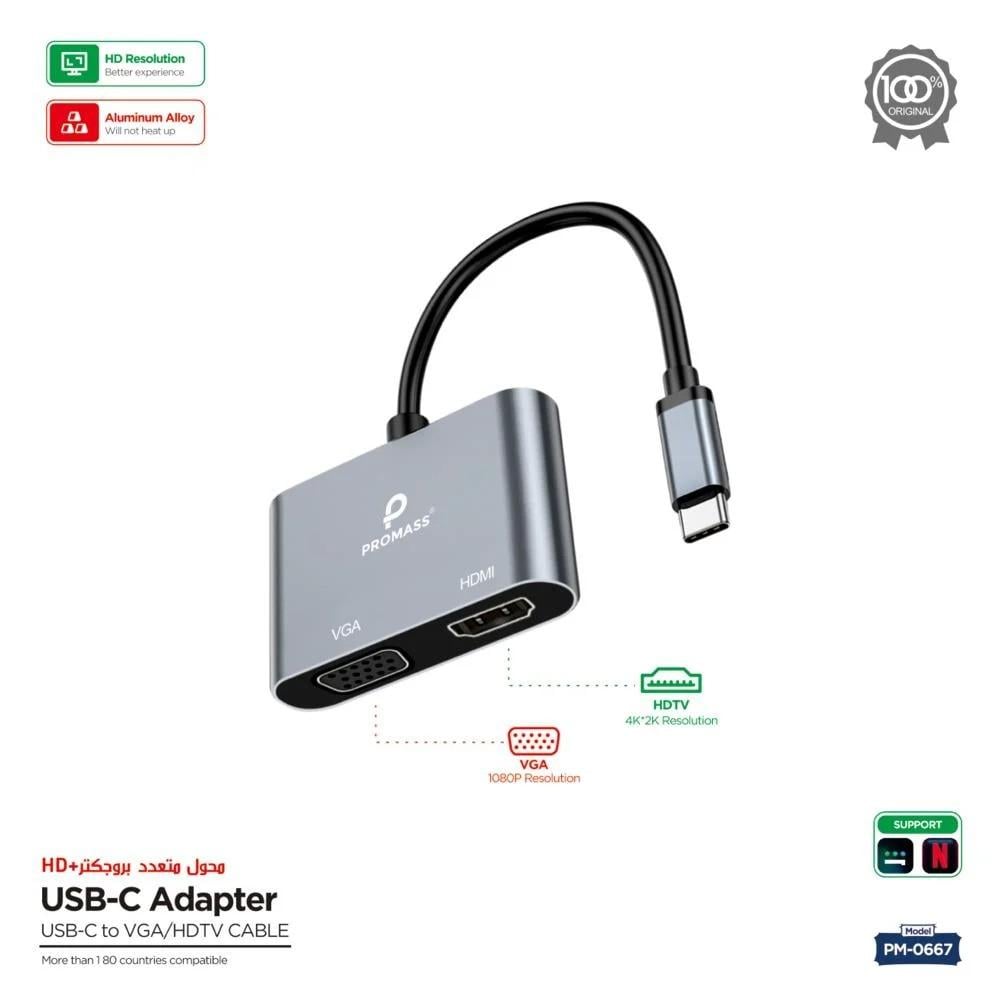 تحويلة Type-c الى بروجكتر - HDMI + VG تتيح لك نقل شاشة العرض الى عدة شاشات