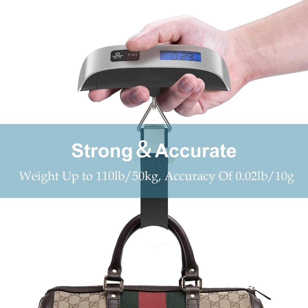 - 【المزايا】 يتضمن هذا الميزان شاشة إل سي دي بإضاءة خلفية رائعة لسهولة القراءة في الإضاءة الخافتة. يمكنك استخدام هذا الميزان في كل مكان حتى إذا لم يكن هناك ضوء. يمكنك وزن ما يصل إلى 50 كجم من الأمتعة باستخدام ميزان الوزن هذا.
